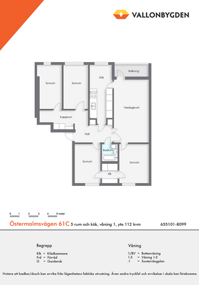 5 rum lägenhet på 112 m²