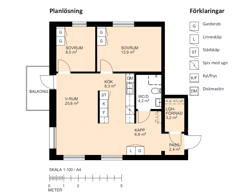 3 rum lägenhet på 90 m²