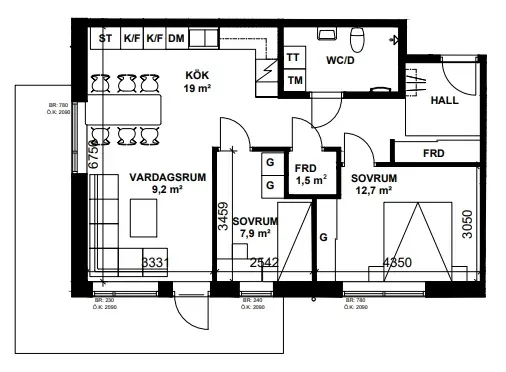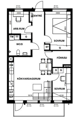 2 rums lägenhet på 62 m²