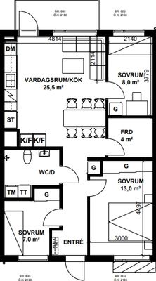 3 rum lägenhet på 72 m²