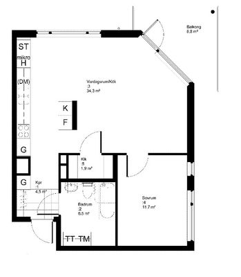 2 rums lägenhet på 55 m²