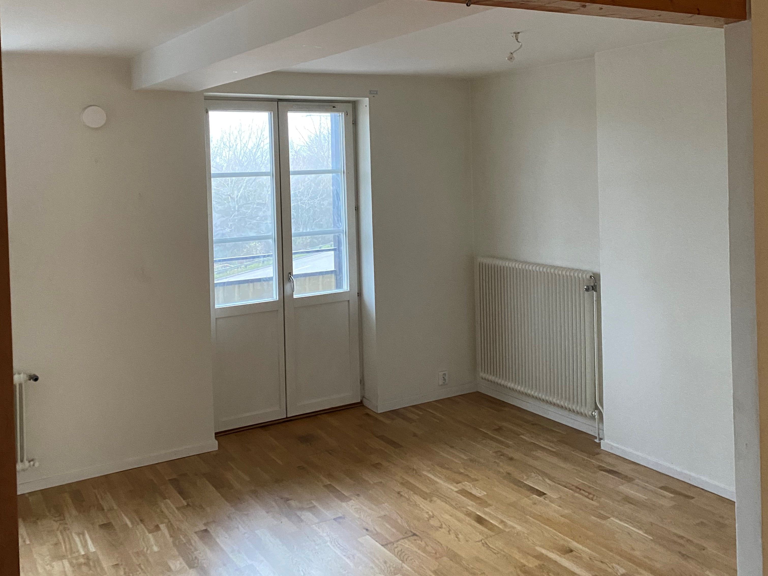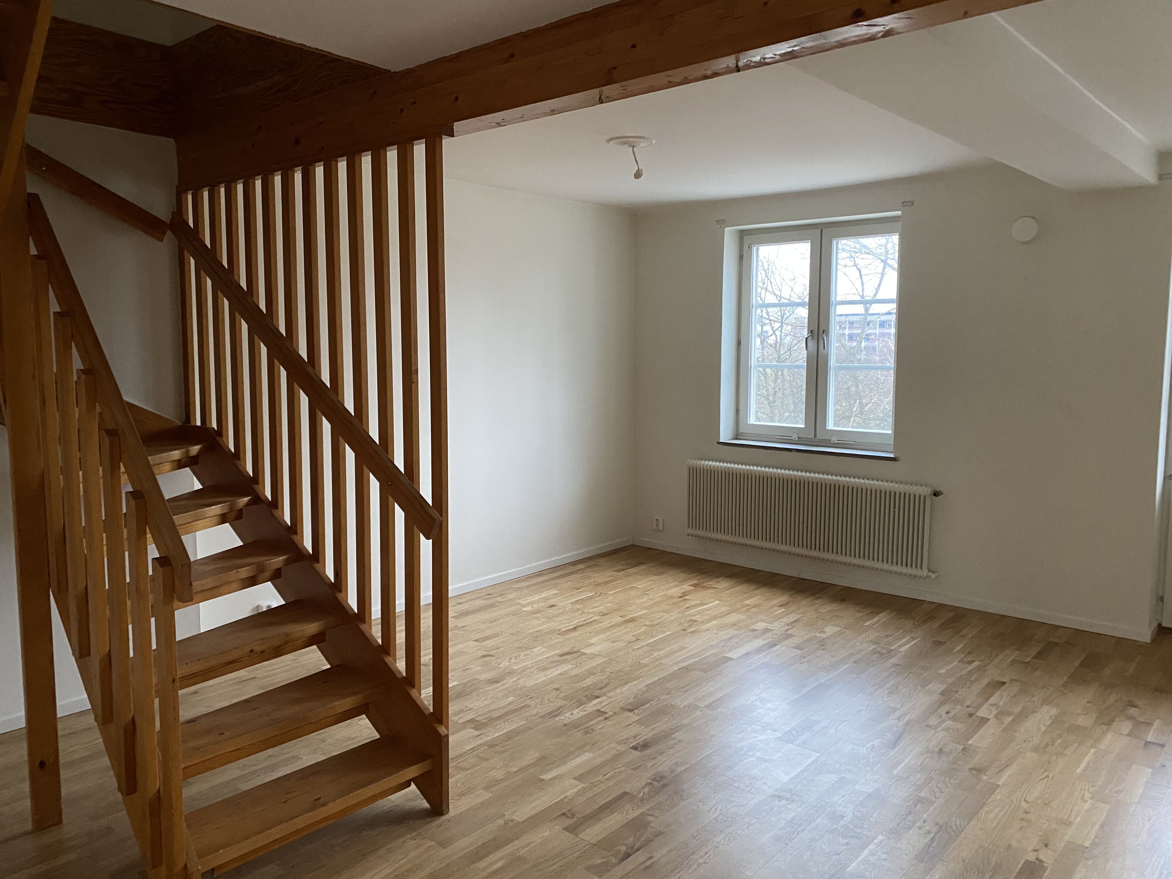 Ombyggd lägenhet där allt är nytt med hög standard! Samtliga rum har ekparkett och vitmålade väggar. I hall ligger klinker som intramp innanför ytterdörr. Sovrum på ovanvåning har snedtak, takfönster med mörkläggningsgardin. Badrummen har vitkaklade väggar och en grå klinker på golv. Badrum i bottenplan har duschväggar i glas, tvättmaskin & torktumlare side by side med bänkskiva och skåp över. Badrum 2 på ovanvåning har badkar, öppningsbart fönster i snedtak. Båda badrummen har handukstork och nytt porslin. Nytt kök med vita skåpsluckor, vitt kakel med fasad kant, grå bänkskiva. Spis med induktions häll med varmlufts ugn, diskmaskin och delad kyl/frys. Nya innerdörrar med vit karm, garderober i hall och skjutdörr parti i sovrum på bottenplan. Klädkammare på ovanplan. Ny el i hela lägenheten. Renovering pågår och är en arbetsplats - Hyrs ut utan visning. Du som nästa hyresgäst ser vi att det finns ett visst trädgårdsintresse då skötsel för uteplatser krävs. Området har Zon parkering.