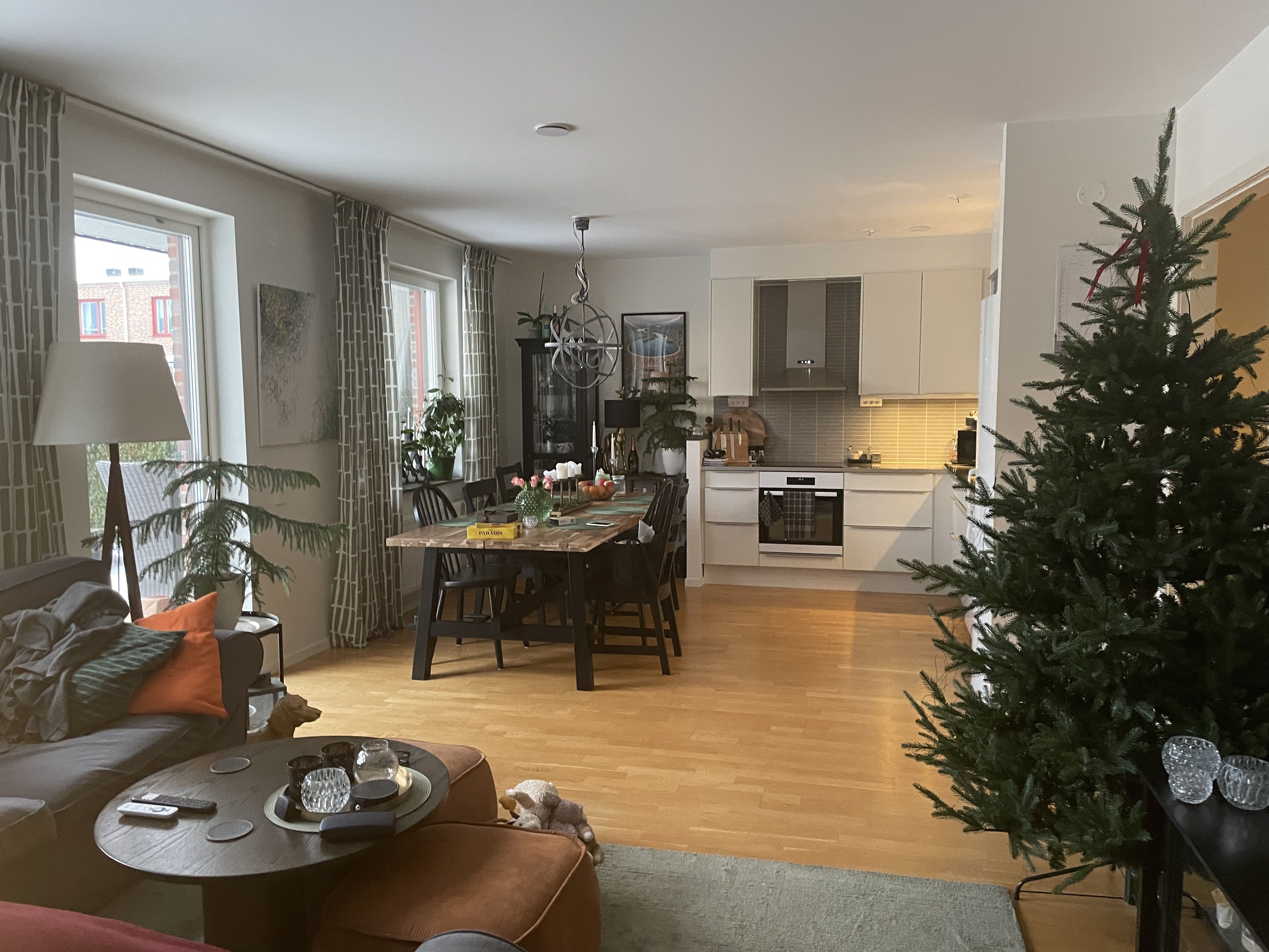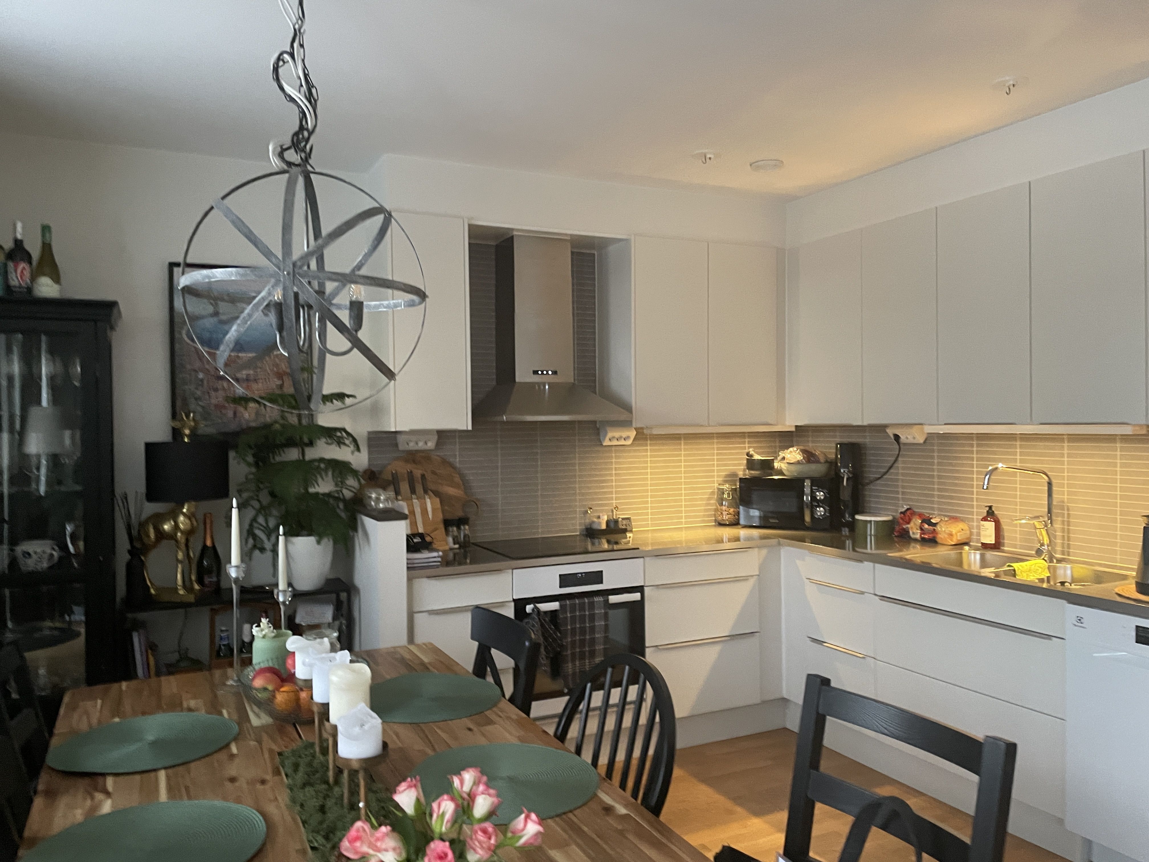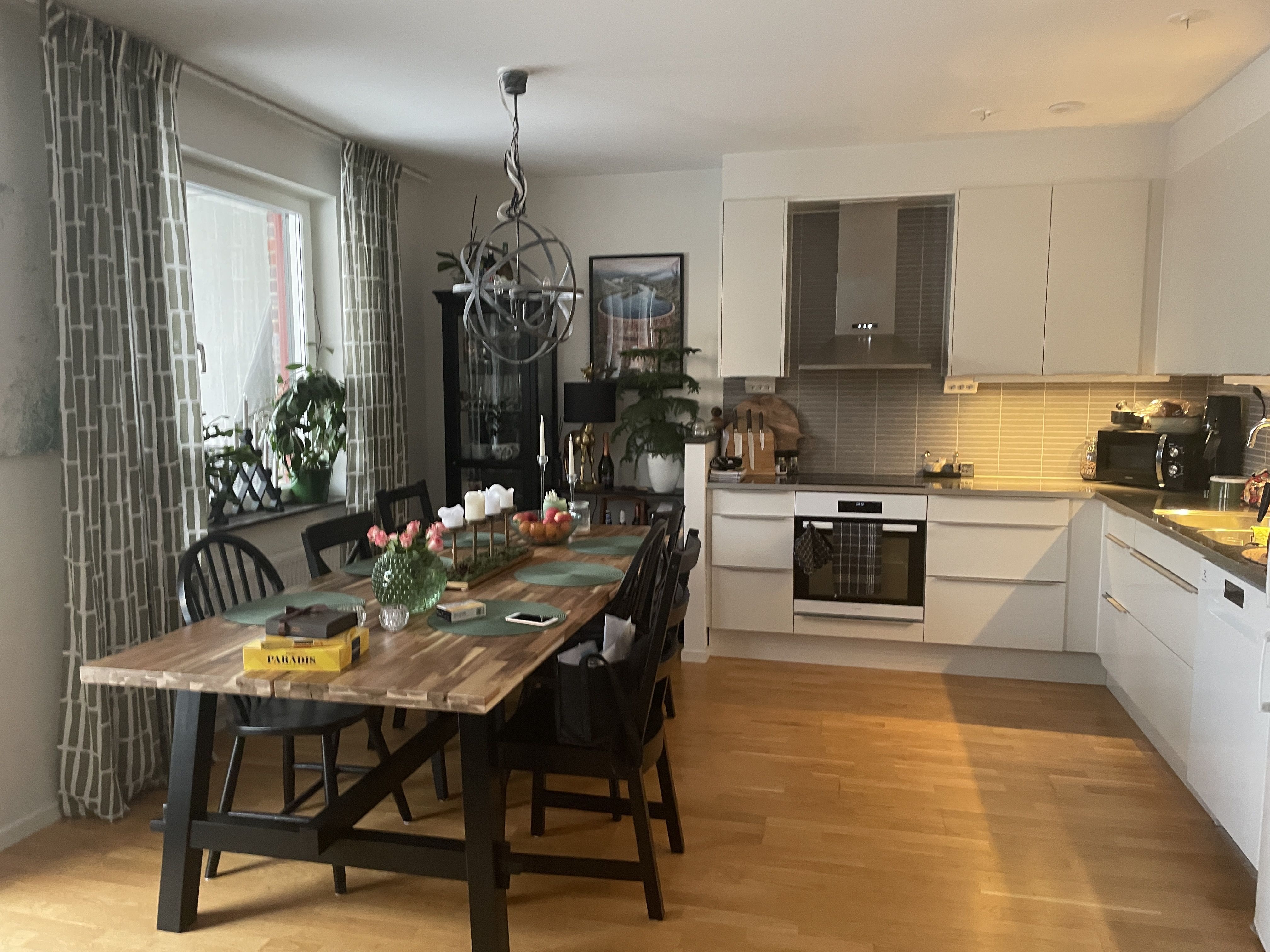 Köket är rymligt med matplats i köket.