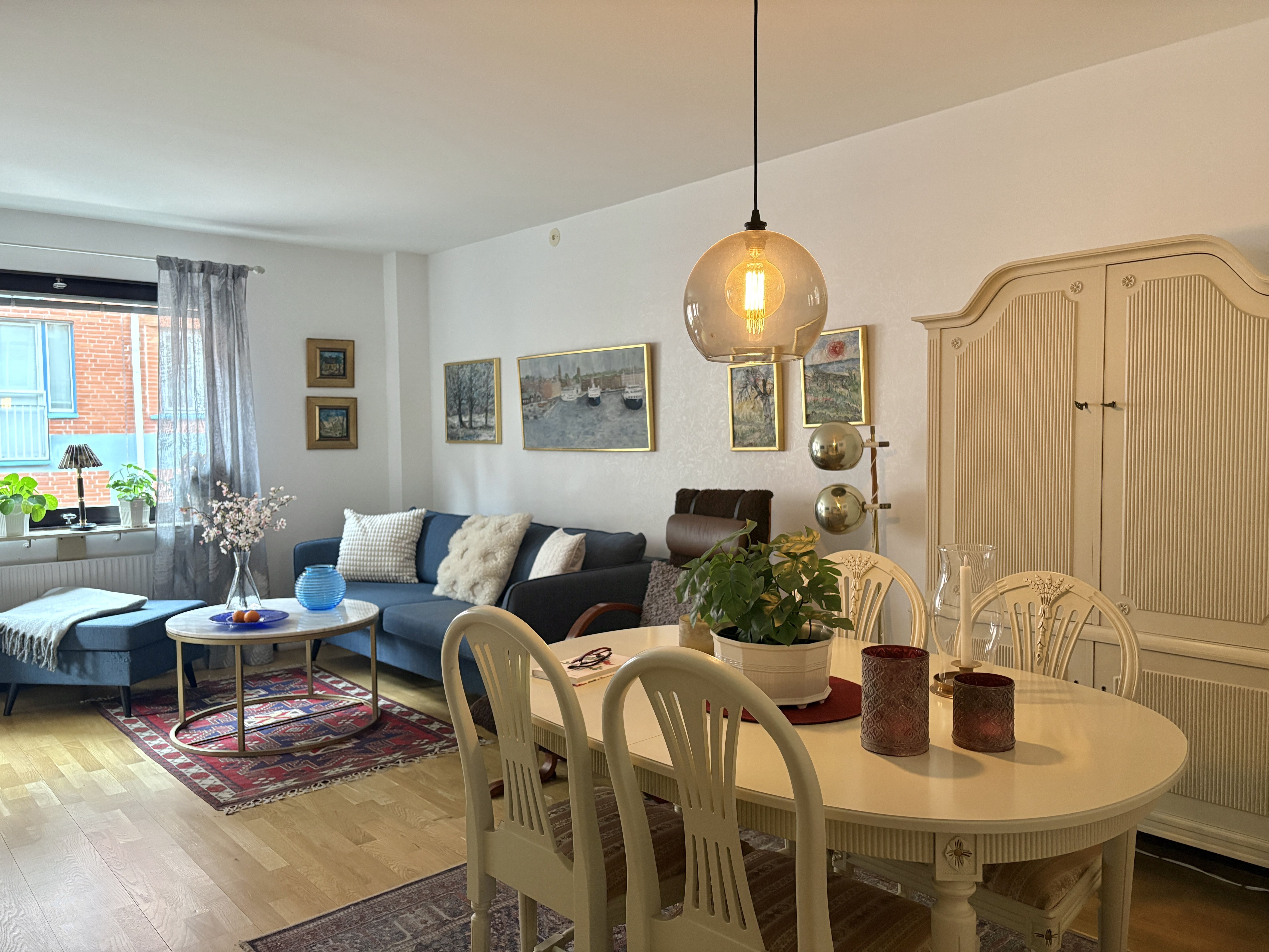 Hall med goda förvaringsmöjligheter via flertalet garderober. Vardagsrum med utgång till balkong. Kök med bra arbets- och förvaringsytor. Sovrum med plats för dubbelsäng samt klädkammare i anslutning. Badrum med dusch, tvättställ och wc.