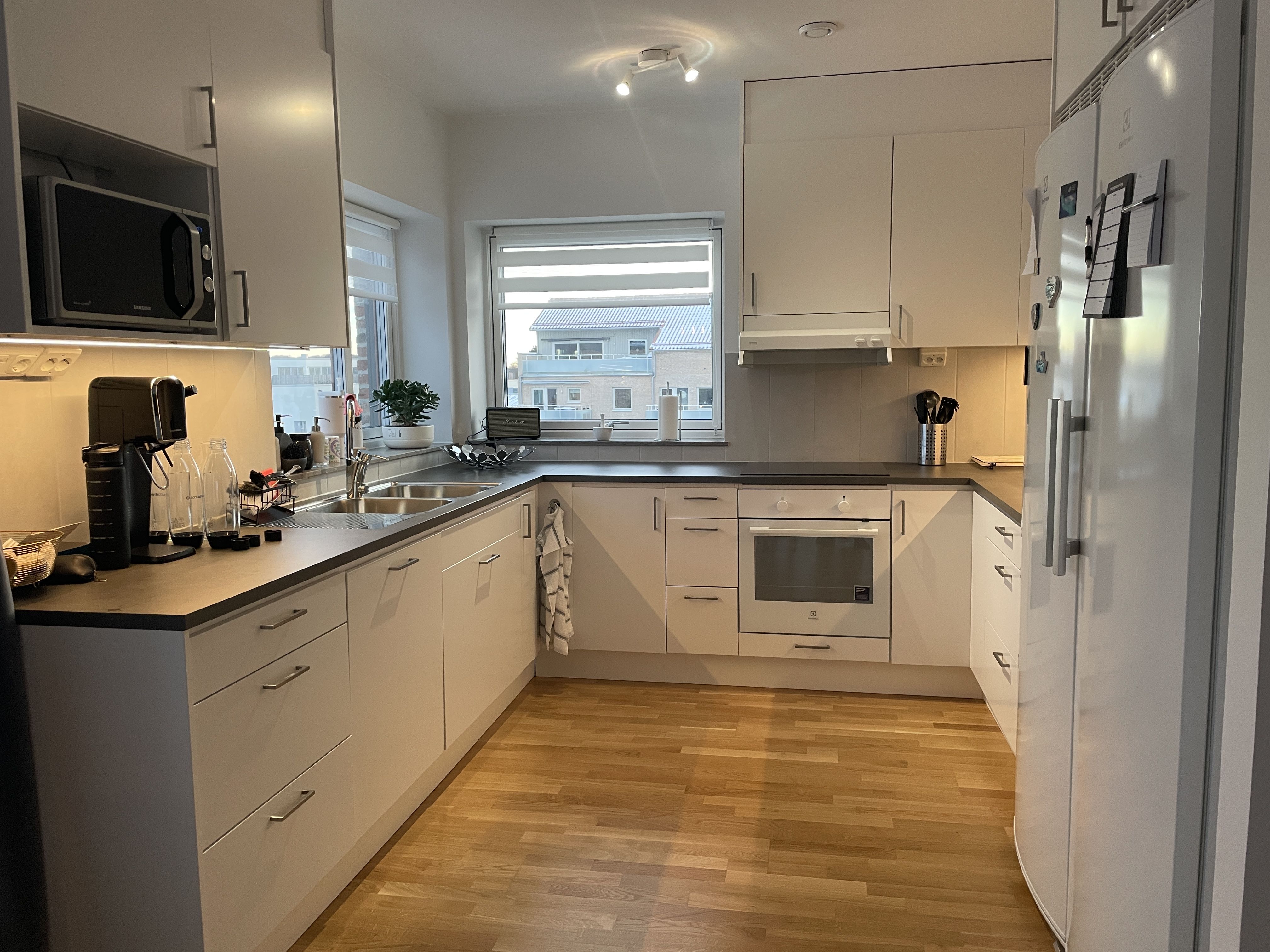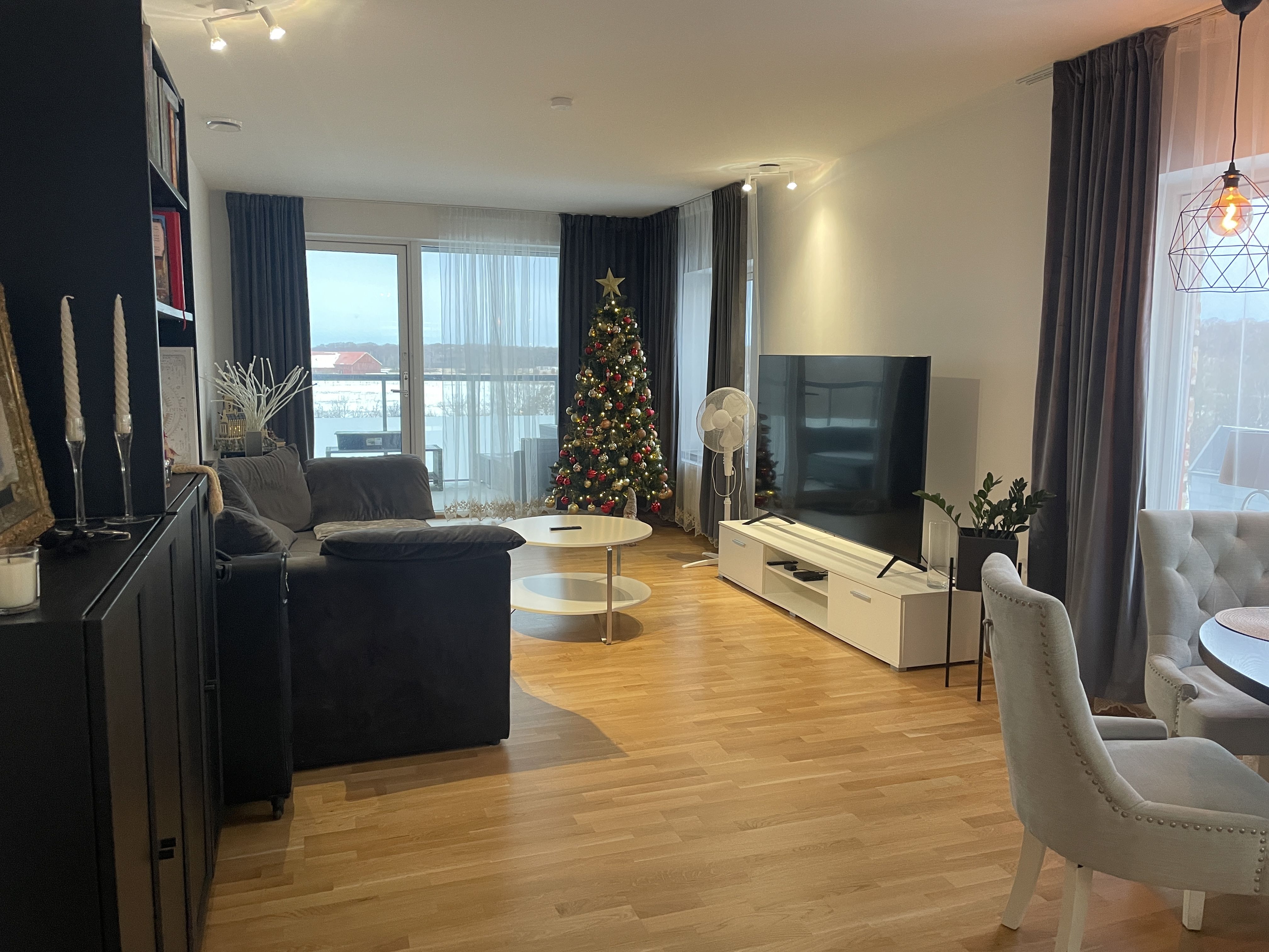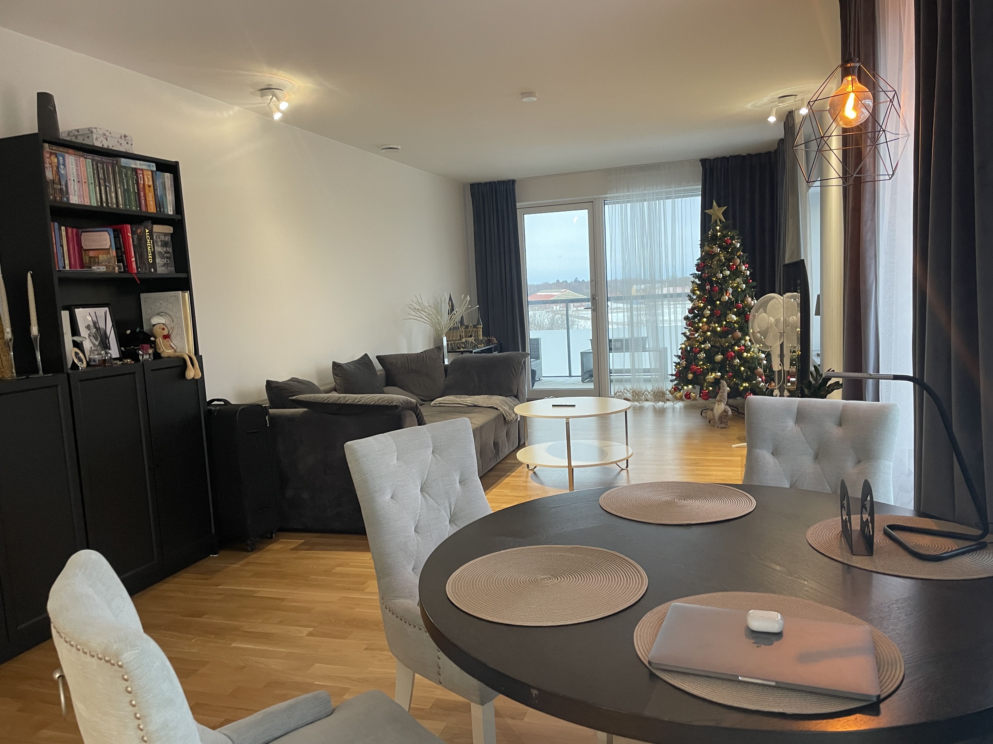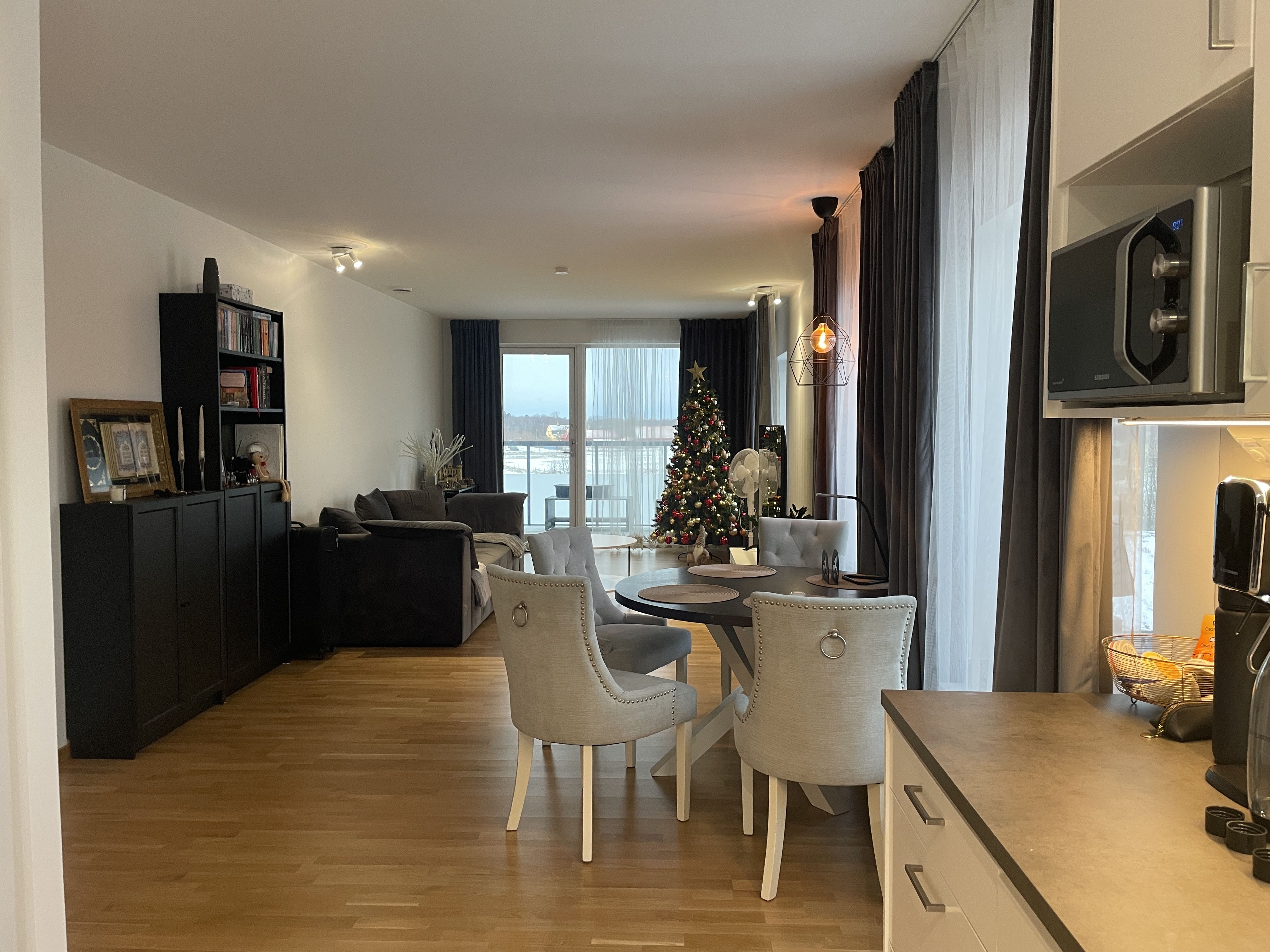 Välplanerad lägenhet med två balkongen varav den ena är inglasad.