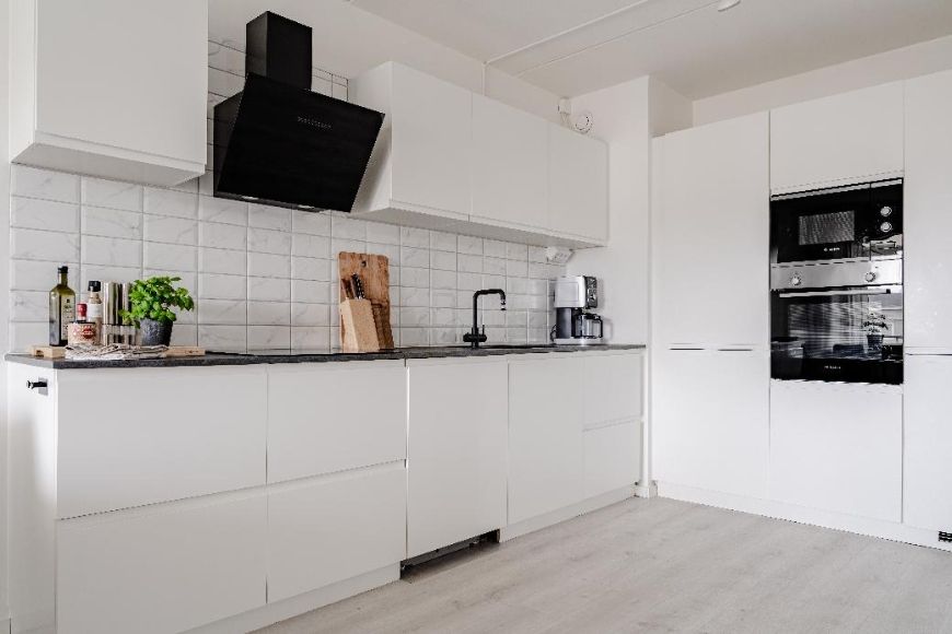 Välkommen till en stilfullt totalrenoverade tvåa från 2021, belägen på andra våningen i en välskött fastighet från 1947. Här bor du med bekvämligheten av hiss, generöst ljusinsläpp och en välplanerad planlösning. Det smakfulla köket från HTH går i klassiskt vitt och är fullt utrustat med rostfria vitvaror, inklusive häll, ugn, mikro och diskmaskin. Det fräscha badrummet är helkaklat och erbjuder duschdörrar, snygg kommod samt tvättpelare.