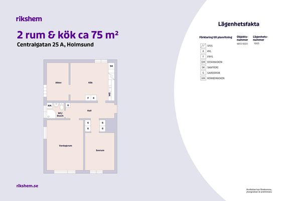 2 rum lägenhet på 75 m²