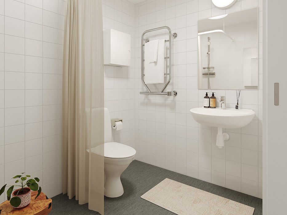 I huset finns gemensamma tvättstugor samt förråd för cyklar, rullstolar och barnvagnar.