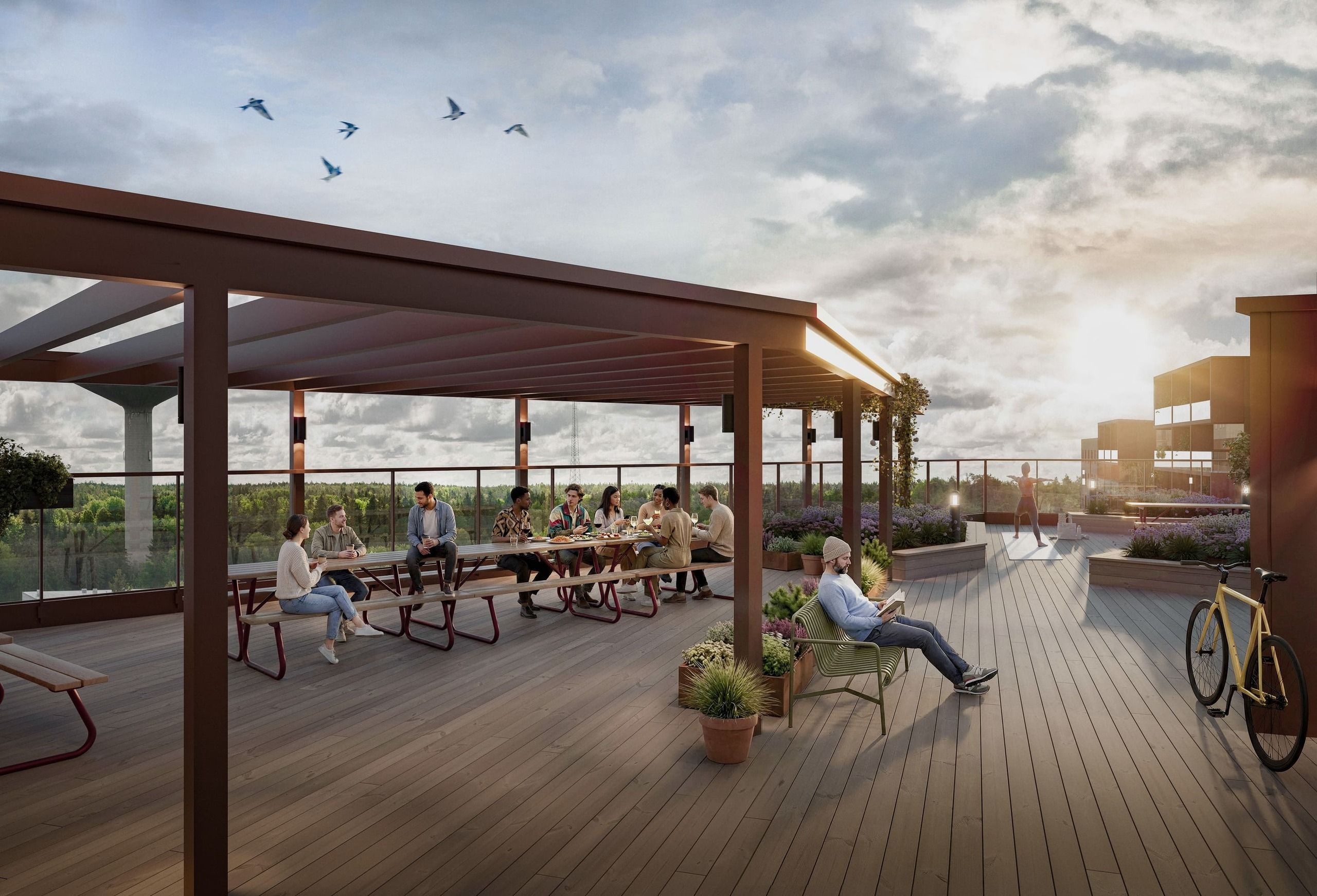 Blick erbjuder hem med vidsträckta vyer över trädtoppar och ett levande campusområde i Flemingsberg - 20 minuter från Stockholm city.