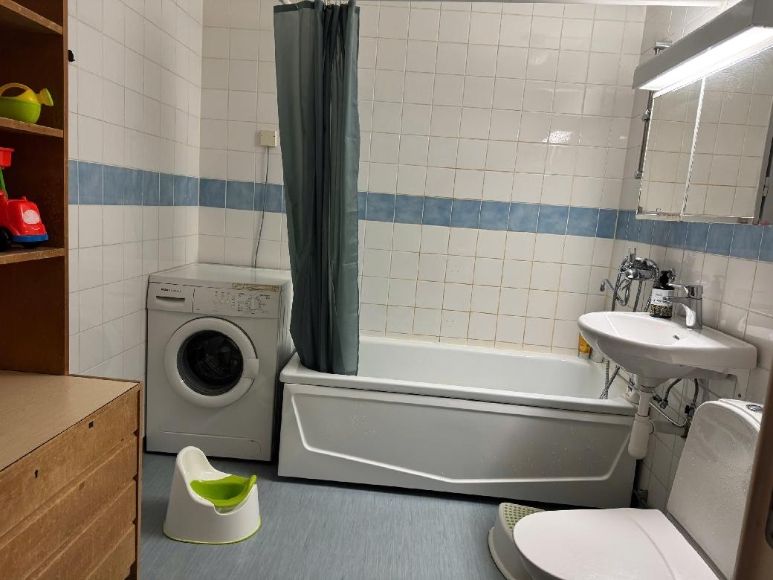 Vi har saker som TV (55"), 2.1 soundbar-högtalarsystem, ett par datorskärmar (21-27"), Xbox One, matberedare, diskmaskin, köksutrustning etc. Utöver de saker som nämns i annonsen har balkongen egna möbler, som för närvarande är hopfällbara och förvarade där. Vi har en utfällbar soffa. Vi har många barnsaker och leksaker för barn under tre år.