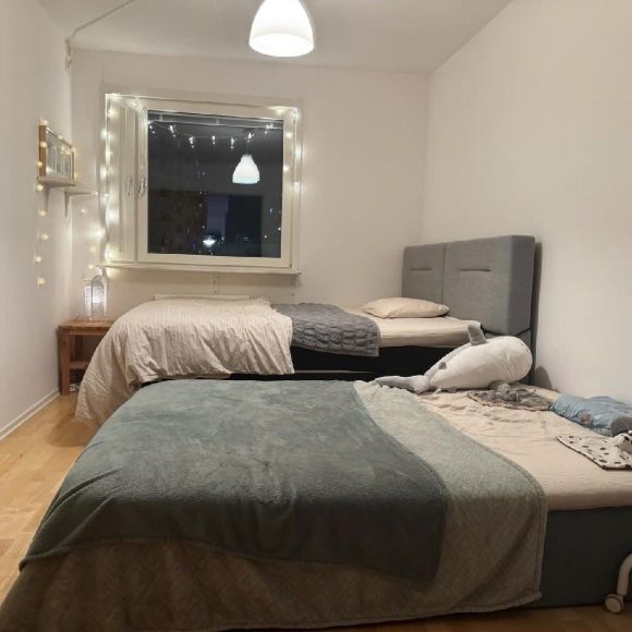Fullt möblerad och ljus lägenhet med öppen planlösning mot väster och nära Sätra tunnelbanestation (20 minuter till T-centralen). Vi har bott här i över 11 år och vi reser i cirka sex månader, vilket är anledningen till att vi hyr ut lägenheten.