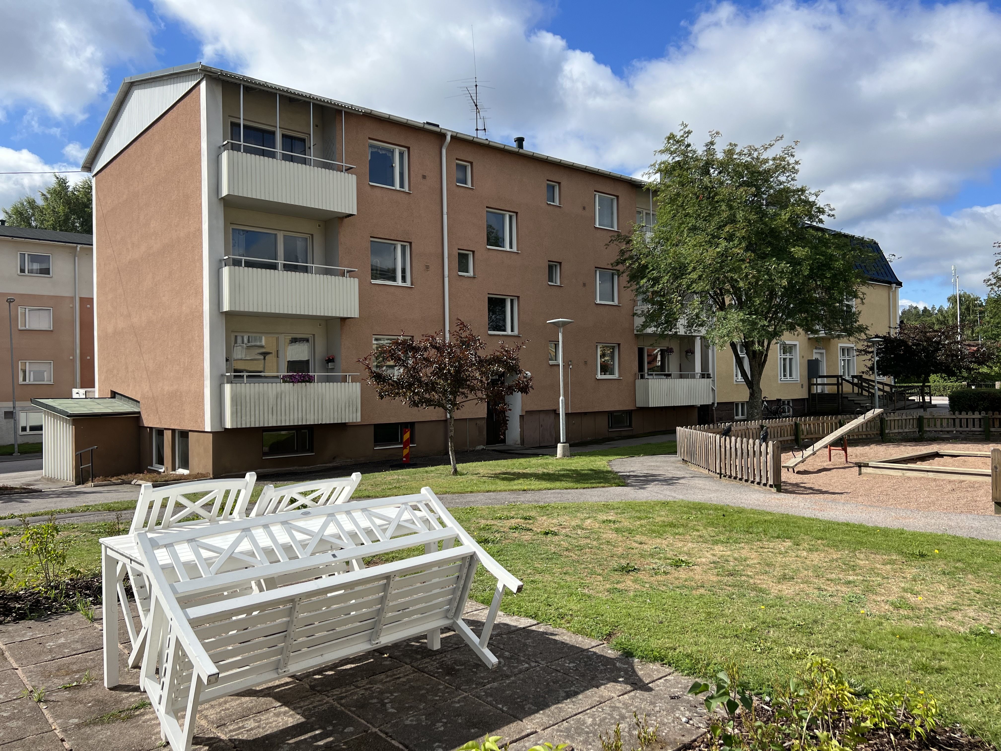 Flerfamiljshus med allt från ettor med kokvrå till trerumslägenheter. Ligger centralt utmed Västra Långgatan med en trevlig innergård. Härifrån tar det fem minuter att ta sig till centrum där vårdcentral, apotek, affärer med mera finns. Digital-TV via Telia ingår, öppen fiber via Z-market finns i fastigheten, eget abonnemang.