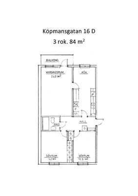 3 rum lägenhet på 84 m²