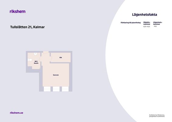 Det är ingen visning av bostaden. Titta på planritningen och bilderna i annonsen. Anmäl bara intresse om du vill skriva avtal utan visning.