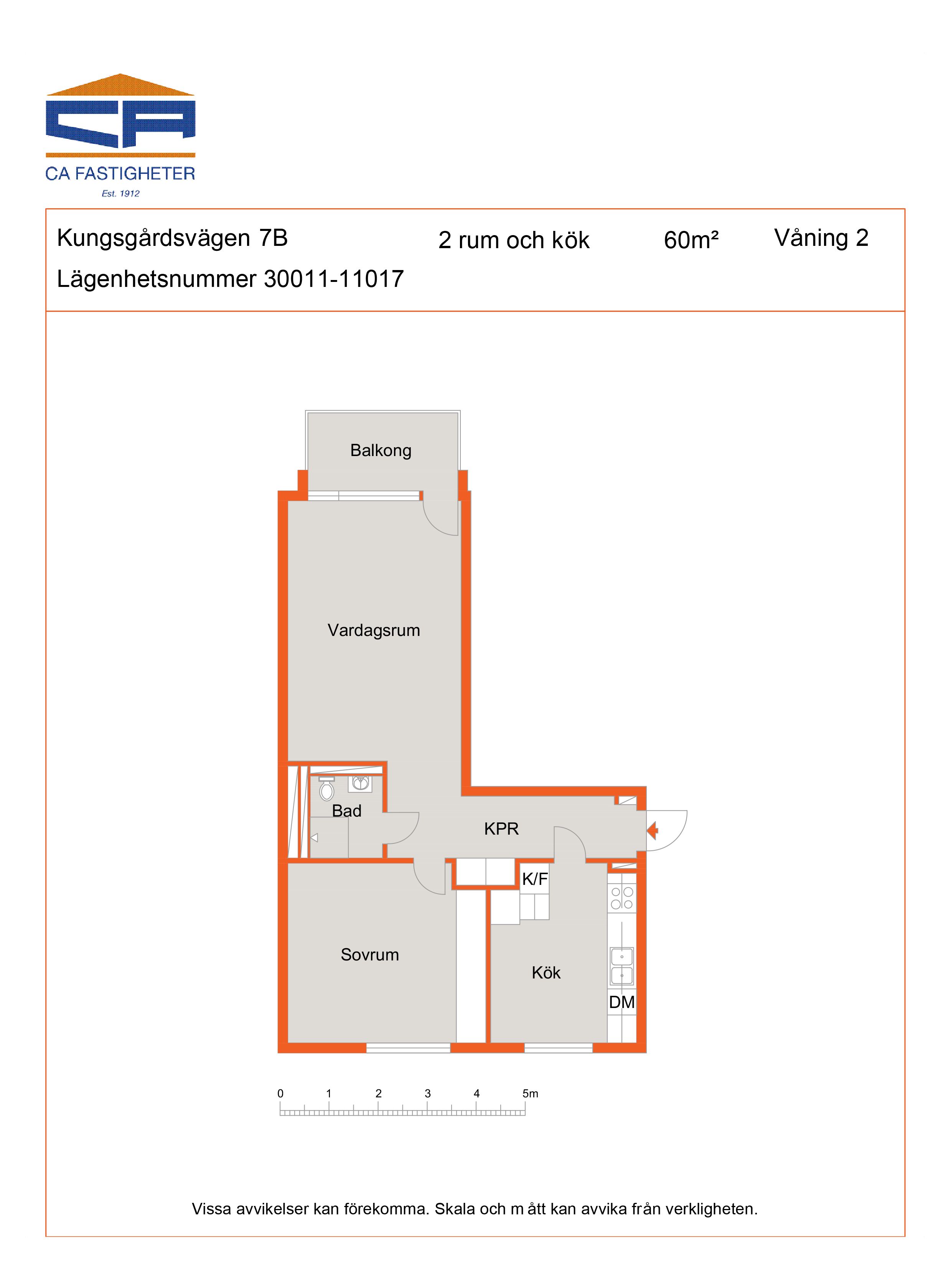Ljus och trevlig lägenhet med vardagsrum, ett sovrum, badrum med kaklade väggar och plastmatta på golvet och ett modernt kök med diskmaskin, spis och en kombinerad kyl/frys.