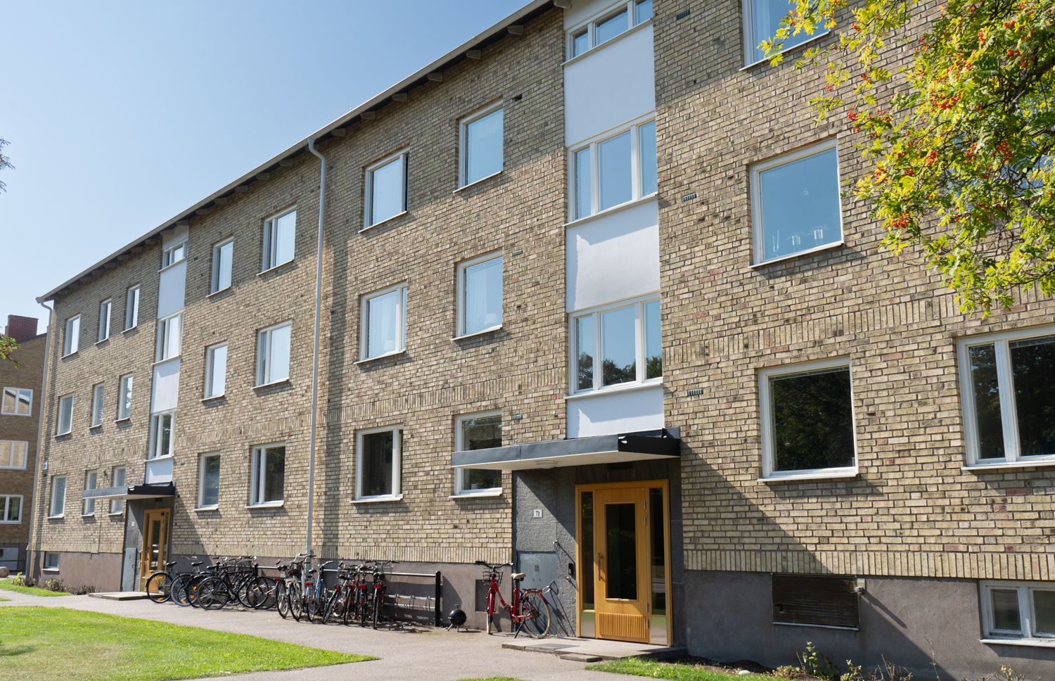 I källaren finns lägenhetsförråd och en gemensam tvättstuga.