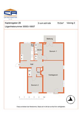 3 rums lägenhet på 72 m²