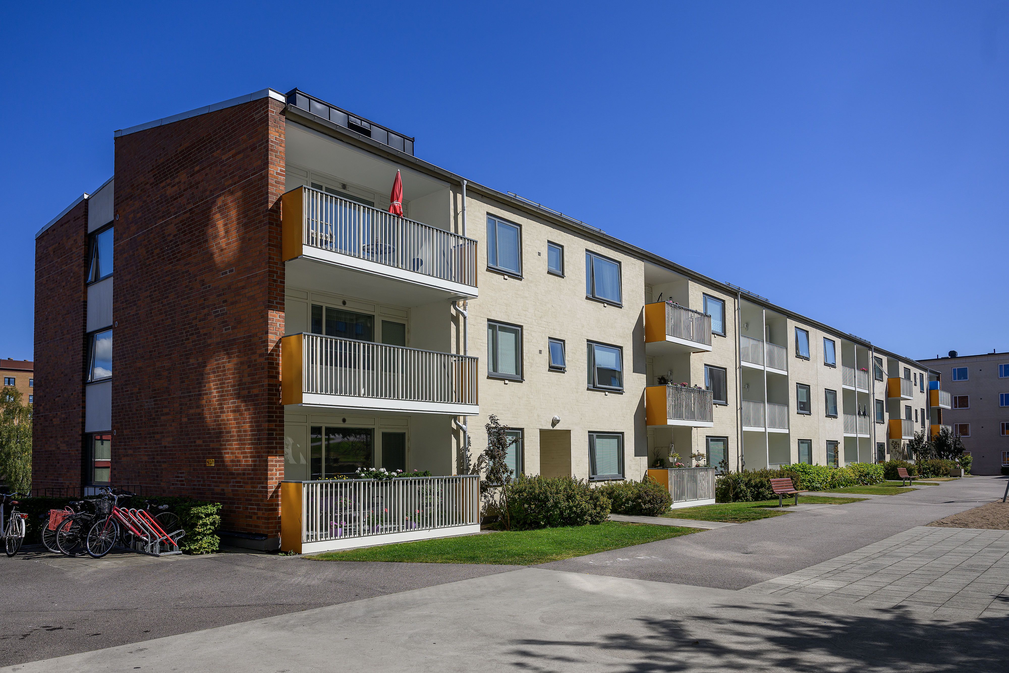 Från Fridhem finns goda bussförbindelser och cykelväg till centrala Karlshamn. Förskola finns i angränsande byggnader och det är nära till flera grundskolor. Här finns många gemensamma innergårdar som bjuder in till socialt umgänge samt trevliga lek- och samlingsplatser. I området finns även en konstgräsplan och basketplan. I det bortersta grönområdet finns över 30 odlingslotter för den som är intresserad. Parkeringsmöjligheterna är goda med såväl parkeringsplatser och garage för uthyrning. Samtliga lägenheter är anslutna till ett högpresterande fiberoptiskt nät för internet. Ett basutbud med Tv-kanaler (Must Carry) ingår i hyran. Stora och välplanerade lägenheter med närhet till strövområde, mataffärer, grundskola och sjukhus med apotek.