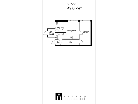 2 rum lägenhet på 49 m²