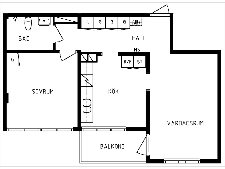 2 rum lägenhet på 49 m²