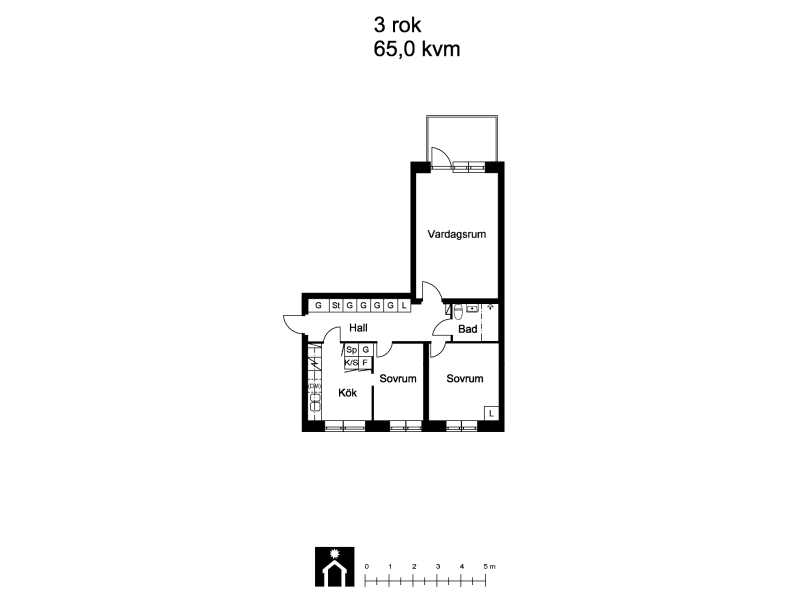 Två rum och kök på Rud