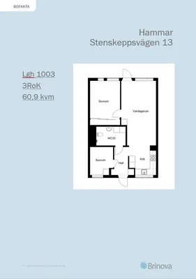 3 rums lägenhet på 70 m²