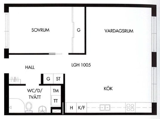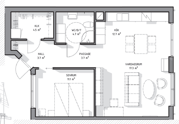 2 rum lägenhet på 60 m²