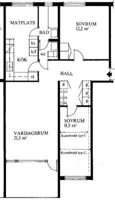 3 rum lägenhet på 68 m²