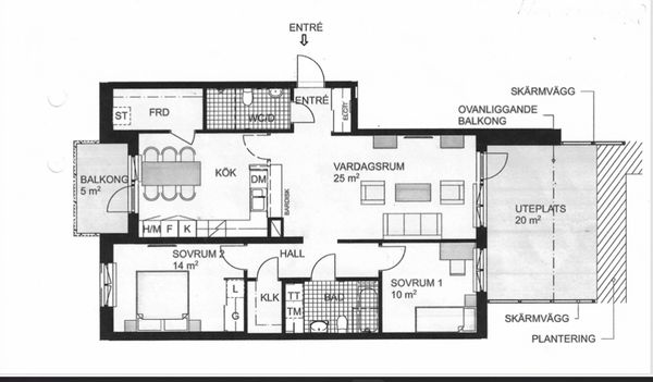 3 rum lägenhet på 73 m²
