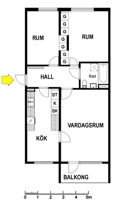 3 rum lägenhet på 75 m²