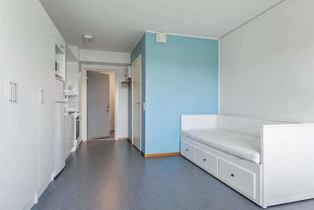 På Campus Aurora erbjuder vi både möblerade och omöblerade 1 Rok till omöblerade 3 Rok med eget kök och badrum samt möblerade korridorsrum där man delar kök och badrum med andra studenter av samma kön. Bra att veta: • Bostaden är möblerad enligt nedan Inventariebeskrivning. • Kök är utrustade med kombinerad kyl/frys, spis med ugn och diskbänk. Tillhörande förråd finns i/till lägenheten. • I hyran ingår värme, Elförbrukning, kall-och varmvattenförbrukning samt Internet (250/250). • Hyran är angiven för 2025 års nivå och kommer att justeras för år 2026 efter att hyresförhandlingarna är klara. • Hyresfritt juni och juli. • Bilderna är exempelbilder, avvikelser kan förekomma Inventarier: • Resårbotten, bäddmadrass och madrasskydd 90x200 cm • Sängbord • Köksbord • Stolar 4 st • Skrivbord • Skrivbordsstol • Skrivbordslampa • Bokhylla • Avlastningsbord • Fåtölj • Taklampa • Gardinbeslag, gardinstång och gardiner