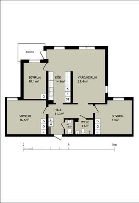 3 rum lägenhet på 72 m²