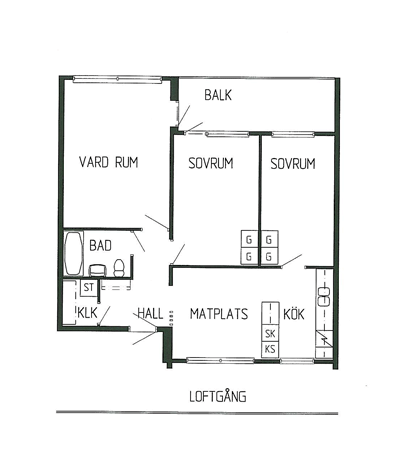 3 rum lägenhet på 77 m²
