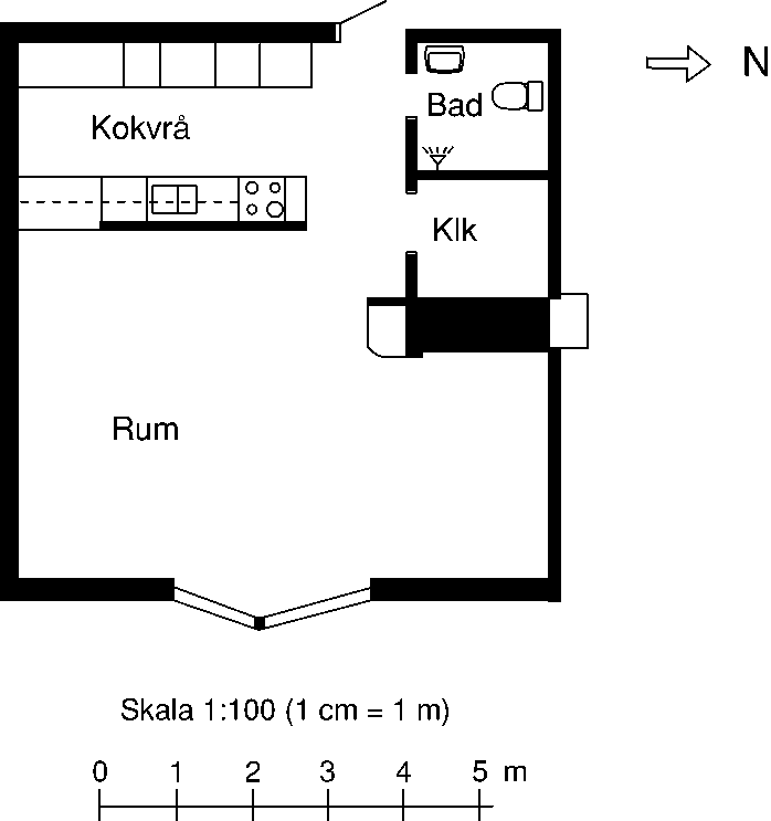 1 rum lägenhet på 39 m²