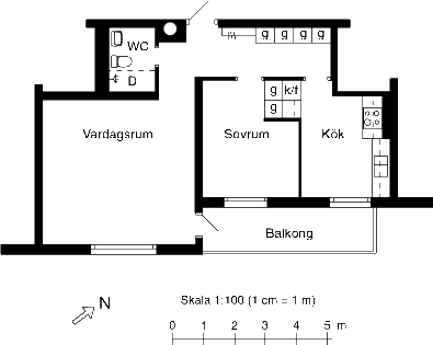 2 rum lägenhet på 60 m²