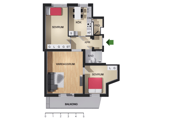 3 rum lägenhet på 73 m²