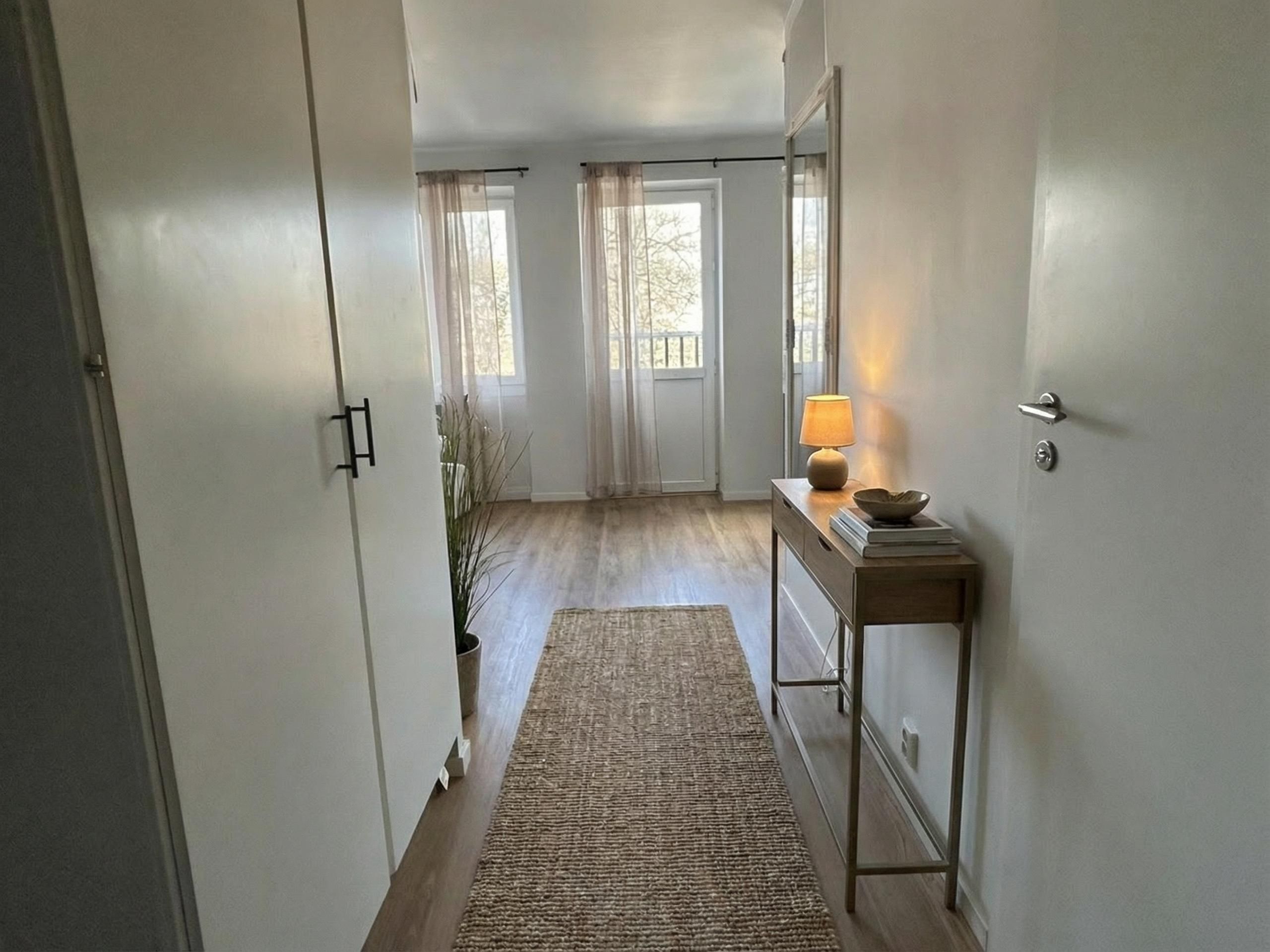 Innan inflyttning kommer väggar att målas i hall, kök och rum.  I anslutning till hallen finns en rymlig klädkammare med bra förvaringsmöjligheter.  Badrummet är utrustat med kaklade väggar, tvättställ med kommod, spegel med belysning, wc och badkar.  Köket är utrustat med vita köksluckor, spis med häll, kyl/frys.  I rummet finns plats för soffhörna och i den anslutande sovalkoven plats för säng.  I anslutning till rummet når du balkongen som är belägen mot gatan.  Posten levereras till postbox i trapphuset. Utanför huset har Postnord en av sina paketulämningsboxar.  I källaren finns förråd som tillhör lägenheten och en gemensam tvättstuga.  Värme och vatten ingår i hyran. Abonnemang för el, hemförsäkring och eventuellt bredband tecknas av hyresgästen. Ett tv-paket från Telia samt en bredbandsuppkoppling om 1 Mbit/s ingår i hyran för våra hyresgäster som ansluts till det nya öppna nätet via fiber. Bredbandsabonnemang kan tecknas av hyresgästen via Z-market. Läs mer på länken
