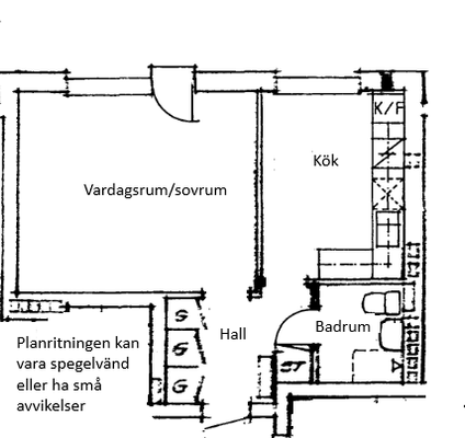 1 rums lägenhet på 36 m²