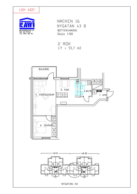2 rum lägenhet på 55 m²