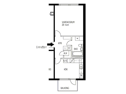 1 rum lägenhet på 24 m²