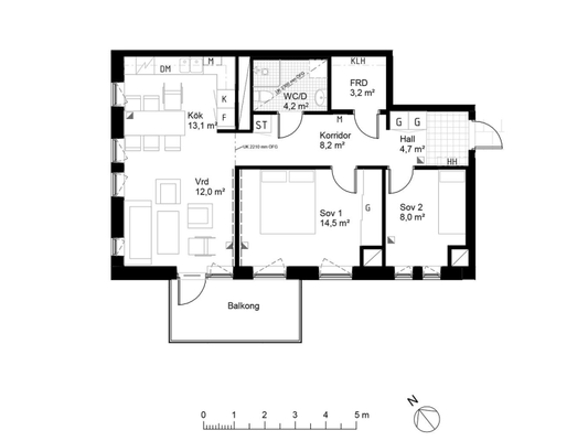 3 rum lägenhet på 73 m²