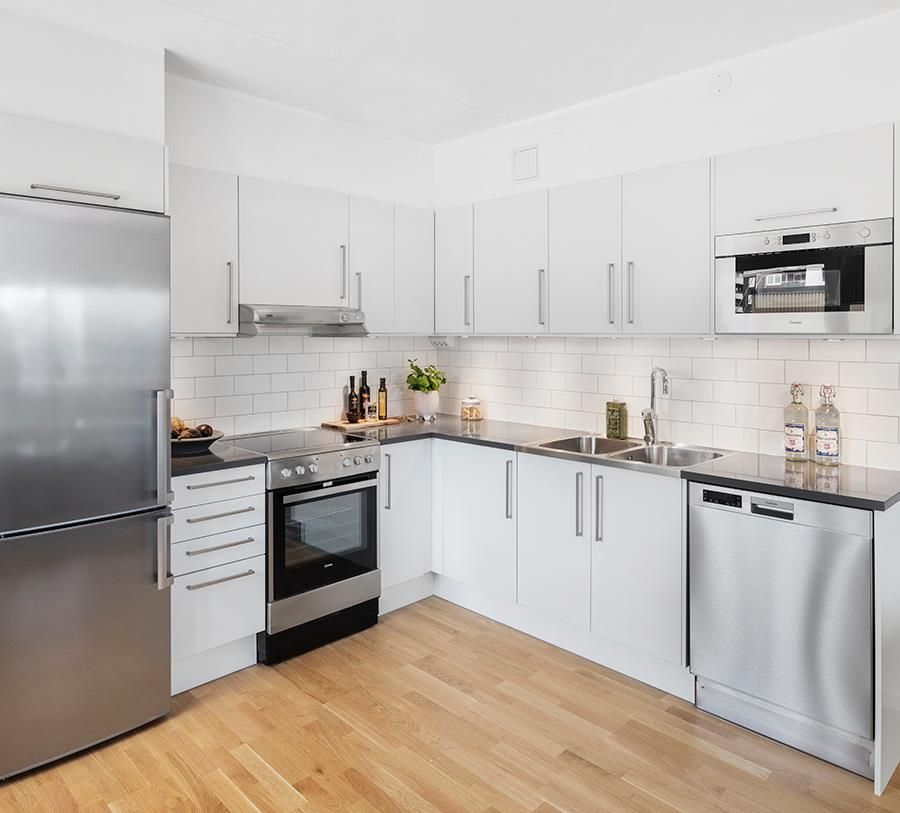 Lägenheten renoverades 2015 och har genomgående parkettgolv och vitmålade väggar. I hallen finns en större garderob med skjutdörr och sovrummet erbjuder en rymlig klädkammare. Köket är i vitt utförande med bänkskiva i trä. Här finns diskmaskin, induktionshäll och inbyggd ugn. Badrummet är helkaklat och utrustat med dusch samt spegelskåp och kommod med förvaring. Från vardagsrummet nås balkongen. Hiss finns inte i fastigheten.
