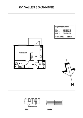 1 rum lägenhet på 38 m²