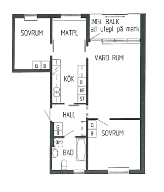 3 rum lägenhet på 73 m²