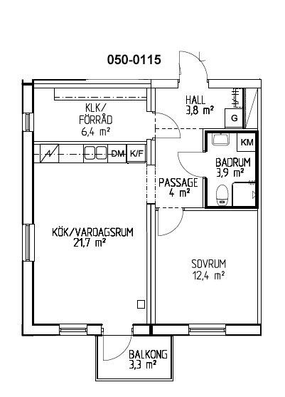 2 rum lägenhet på 46 m²