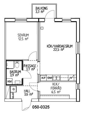 2 rum lägenhet på 45 m²