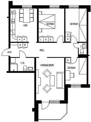 3 rum lägenhet på 73 m²