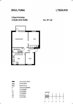 2 rum lägenhet på 57 m²