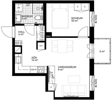 2 rum lägenhet på 34 m²