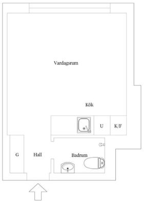 1 rum lägenhet på 26 m²